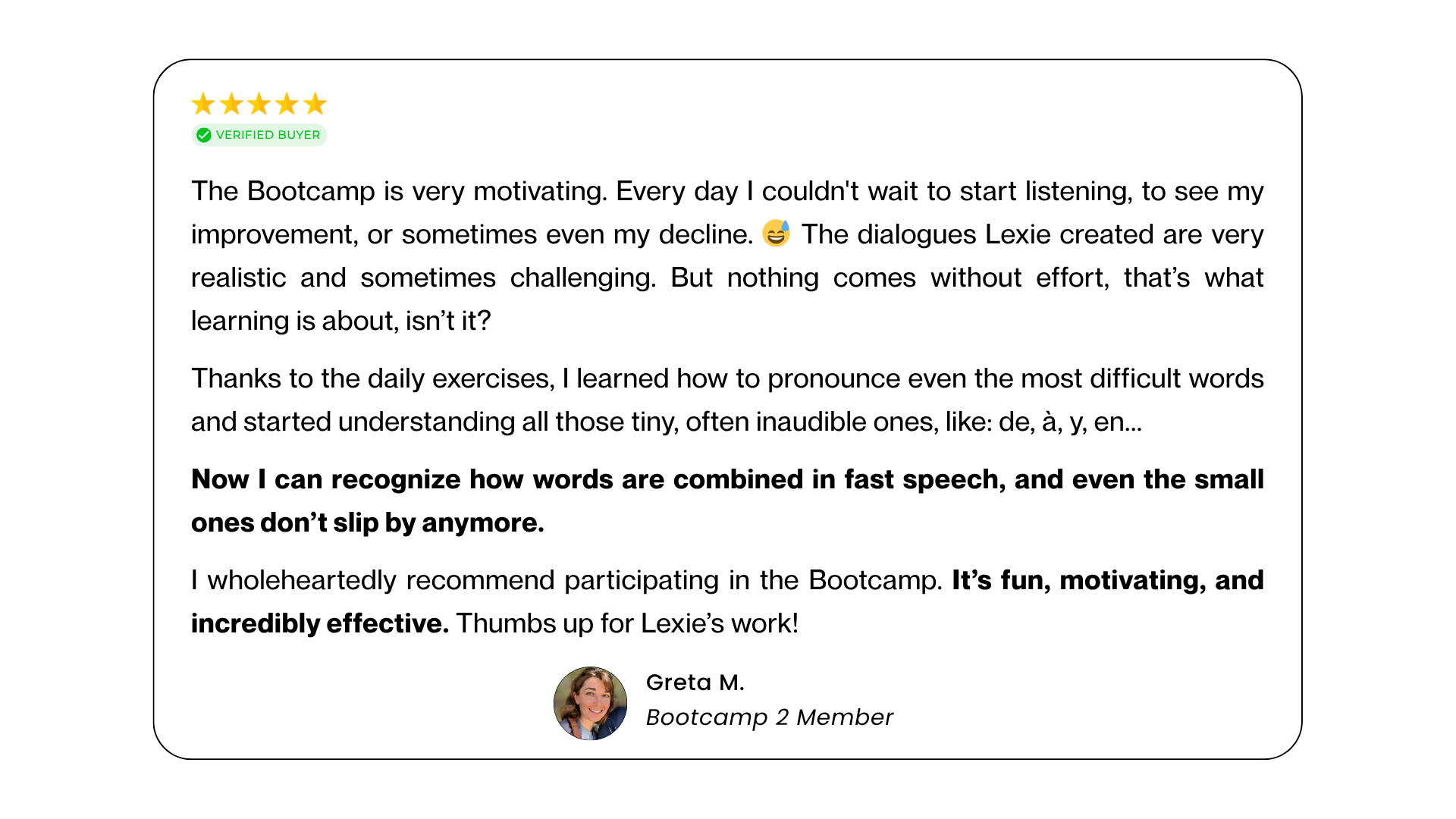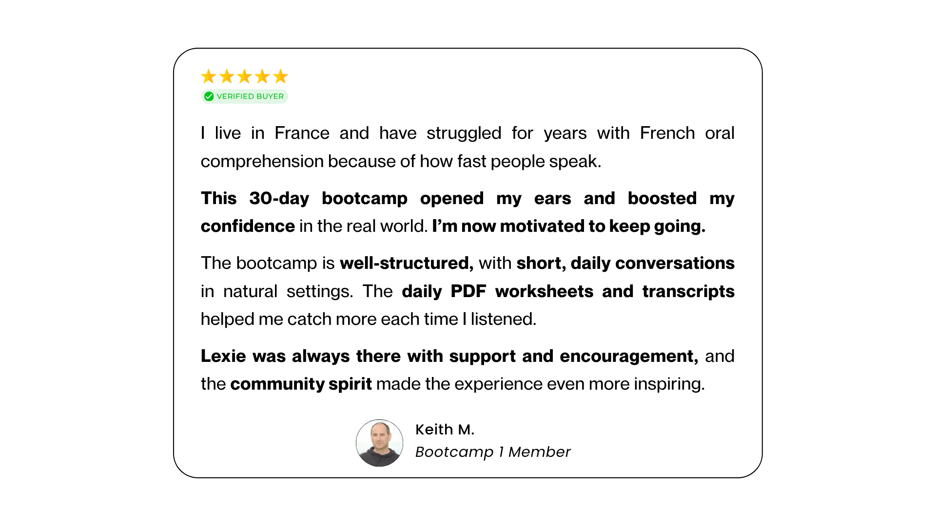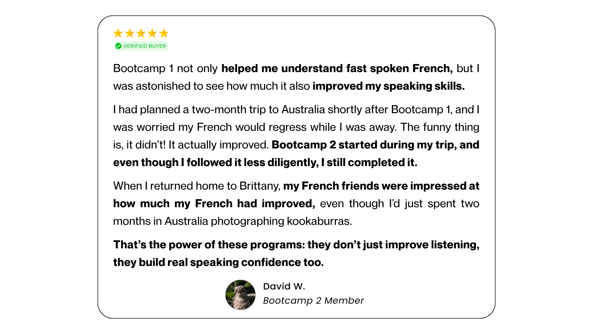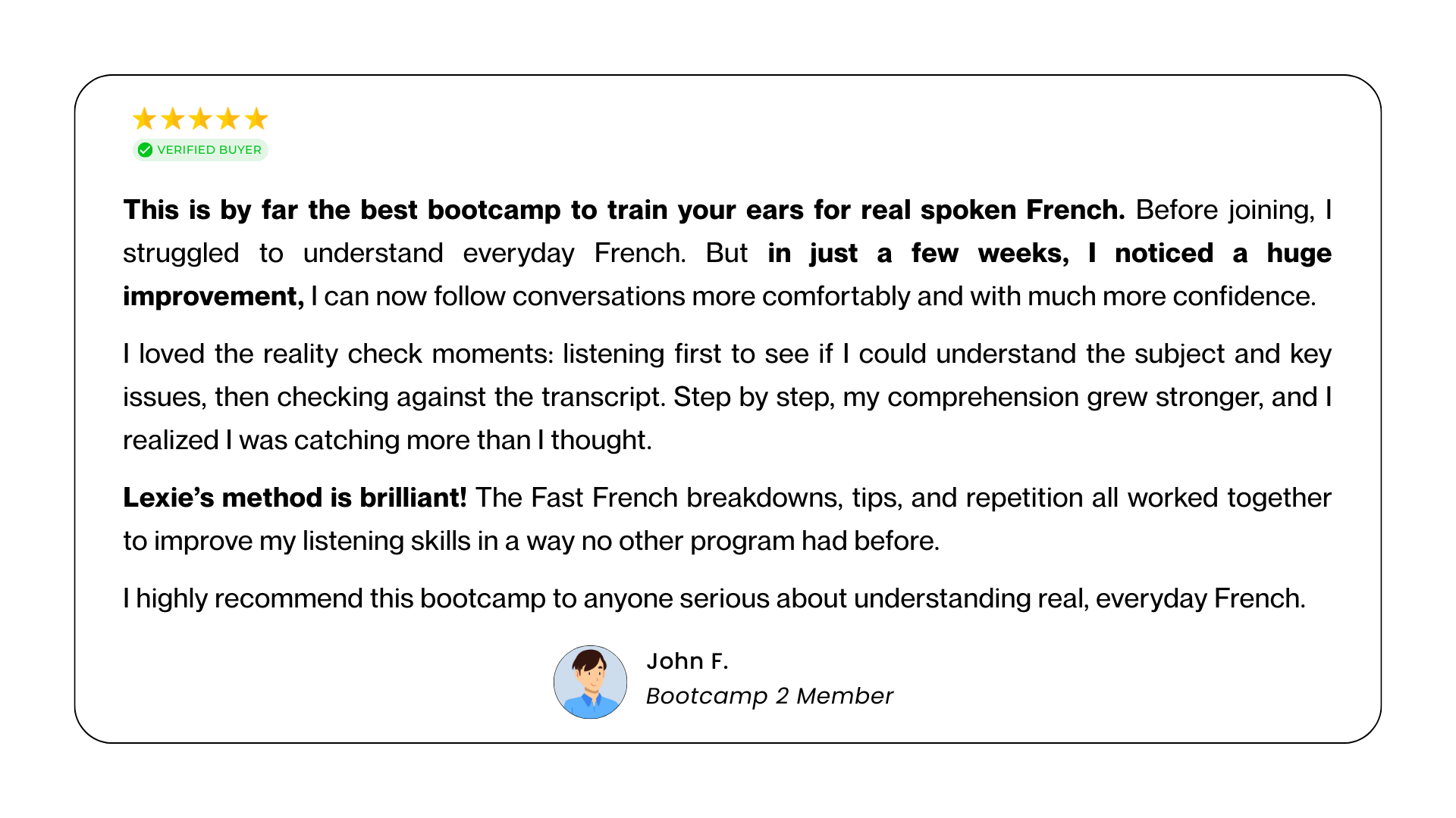 → Choose Bootcamp 2 if fast spoken French still takes effort and you want it to feel smoother and easier.