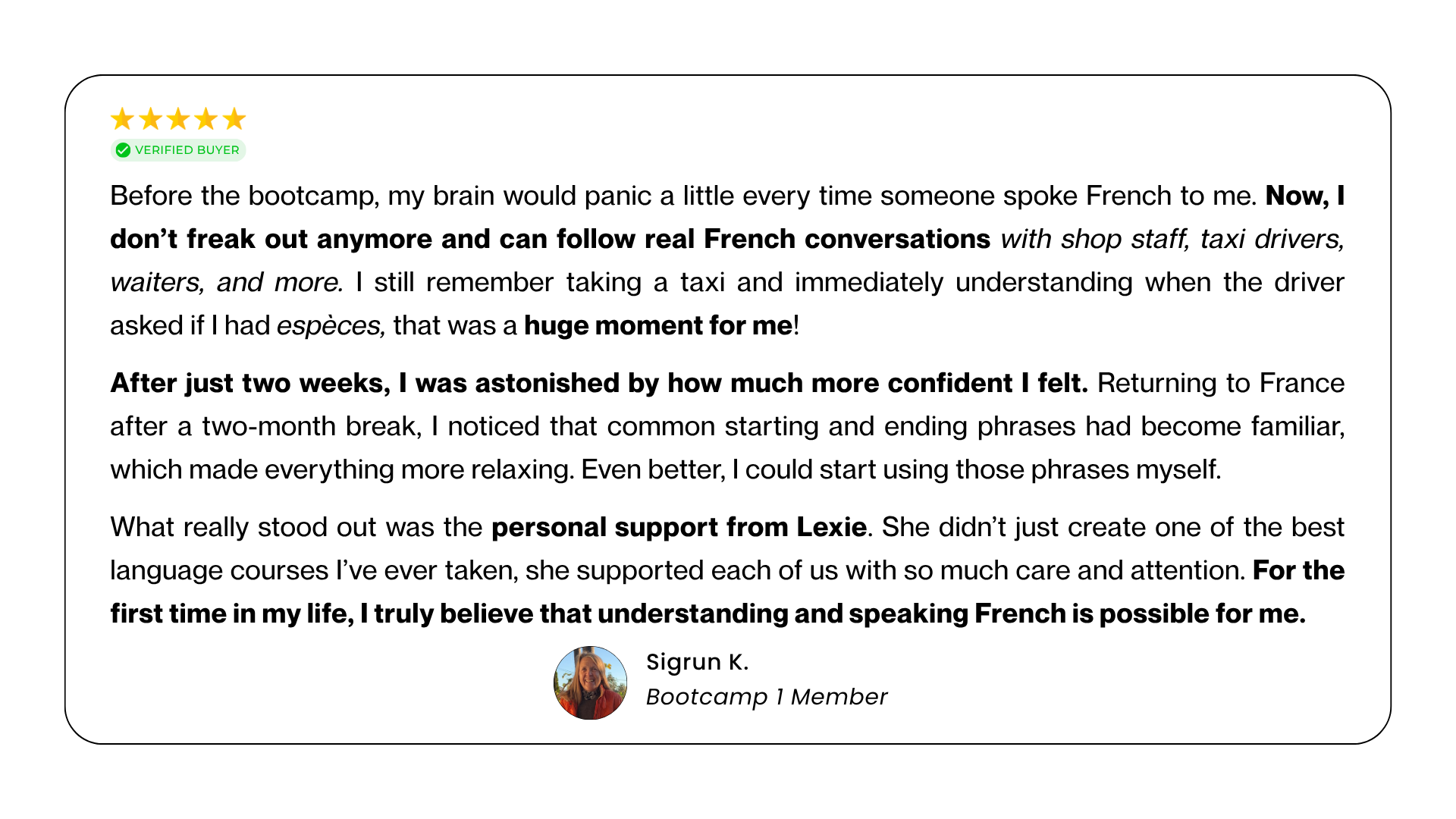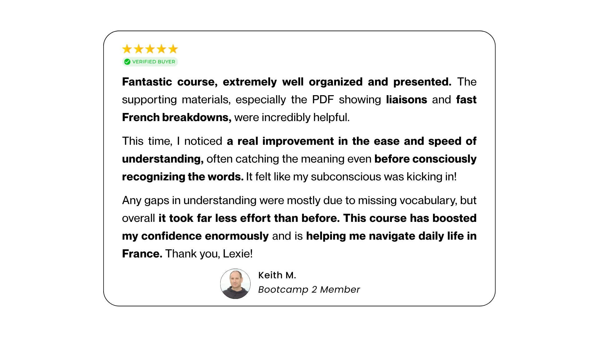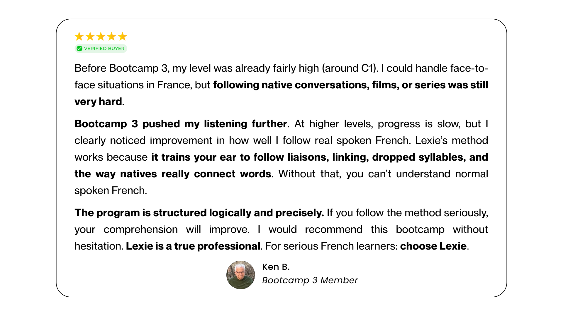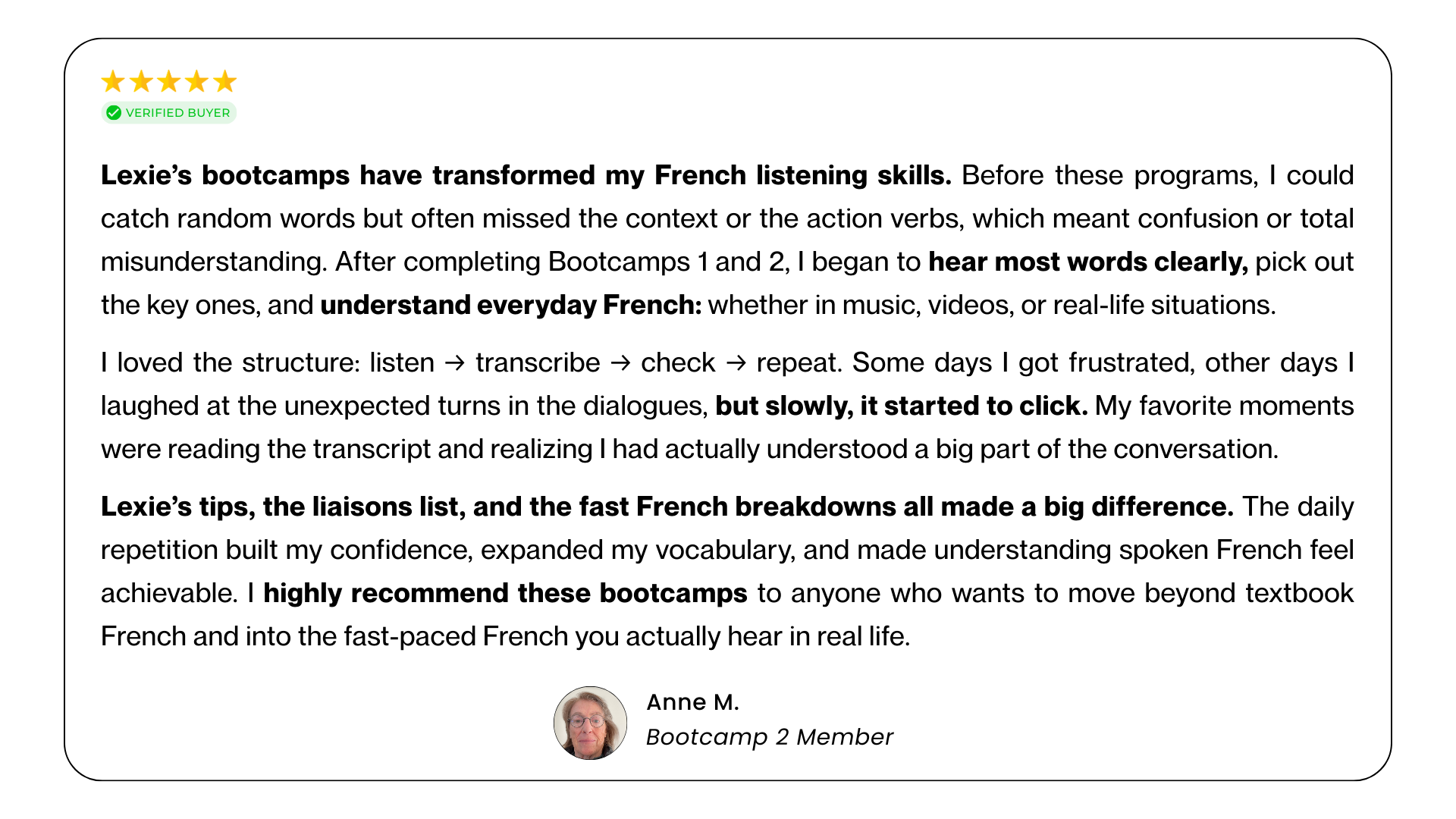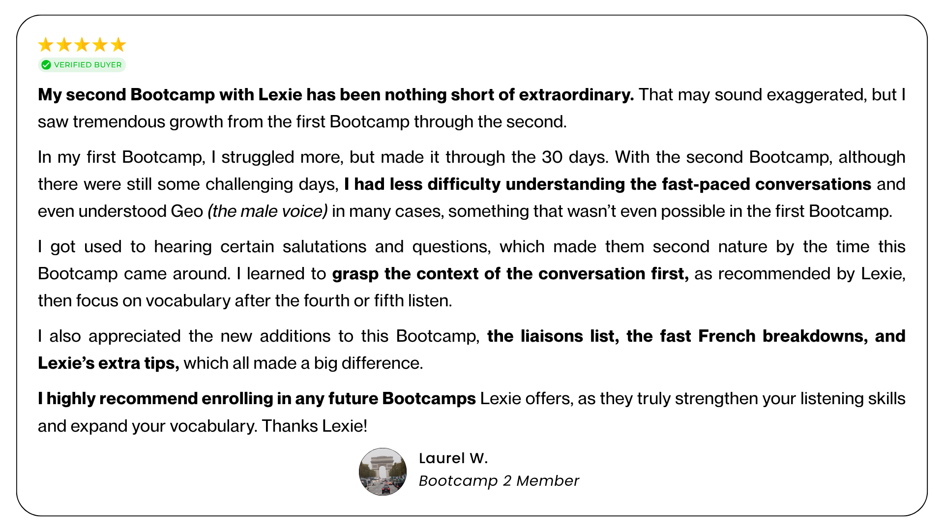 → Choose Bootcamp 2 if fast spoken French still takes effort and you want it to feel smoother and easier.